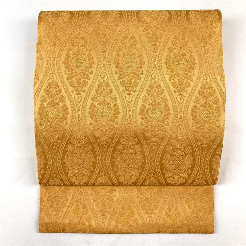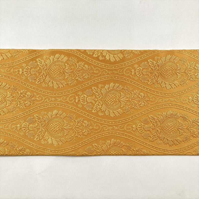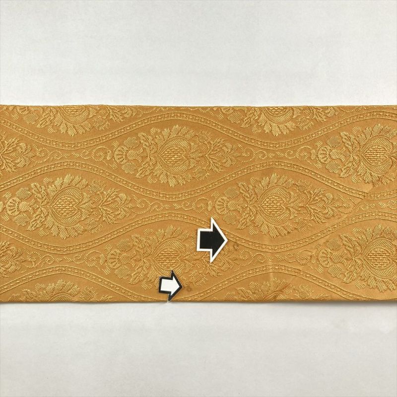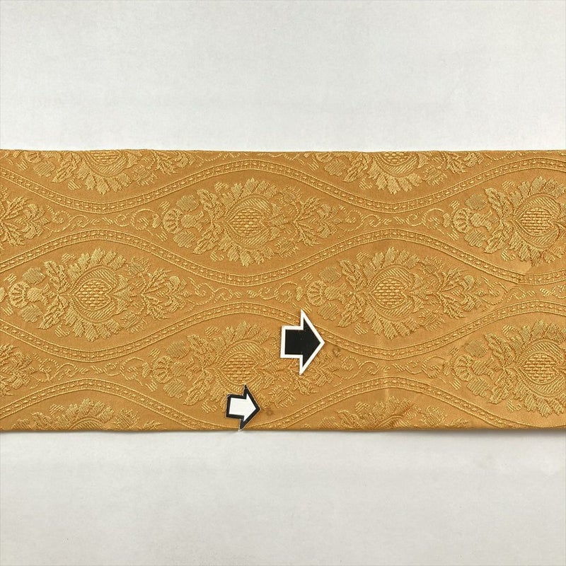(中古)名古屋帯 濃黄色 オレンジ色 カジュアル 名古屋仕立て 織り 立涌華文