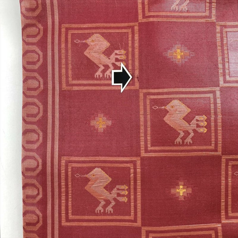 【色柄】赤 カジュアル うるし箔調 鳥 コプト柄 織り