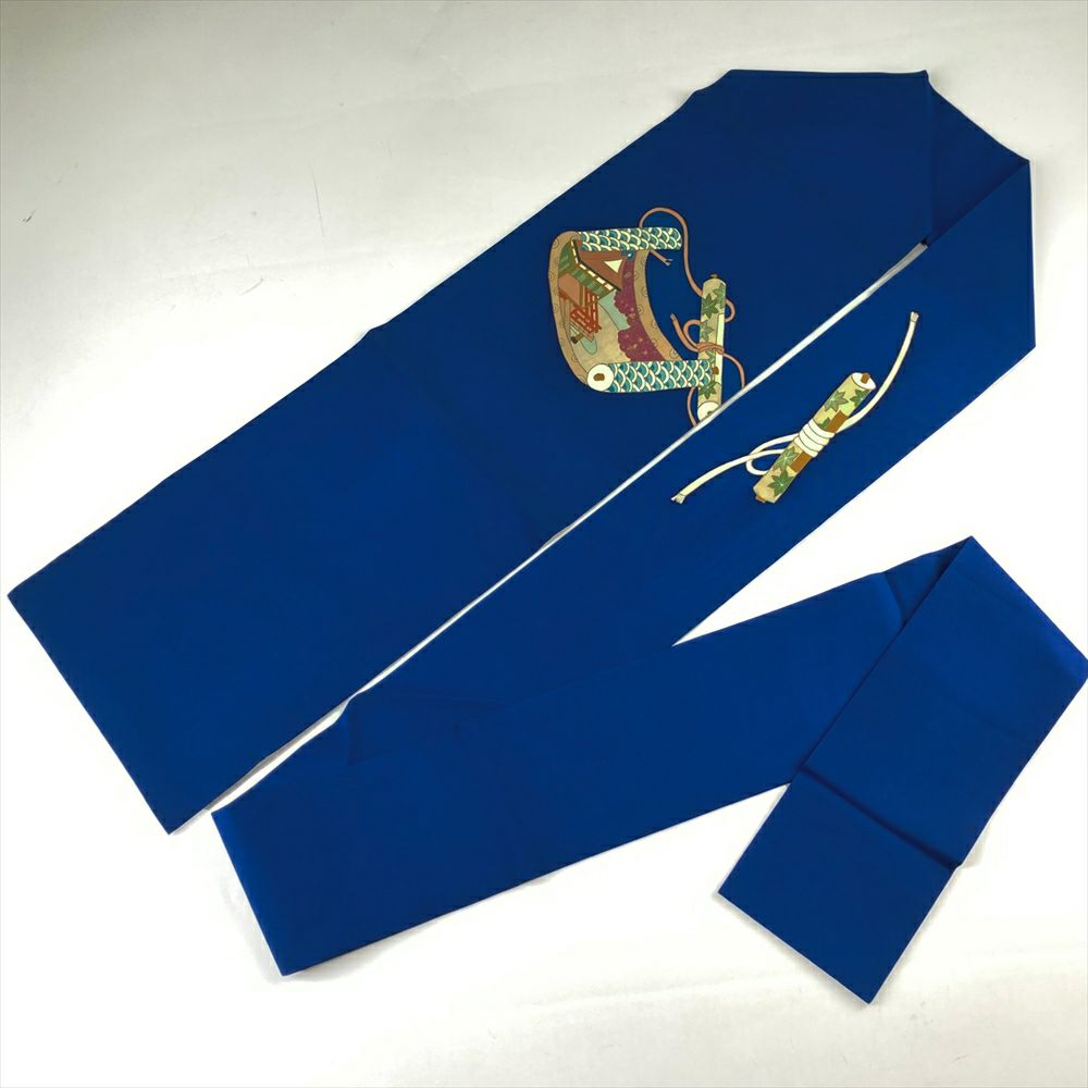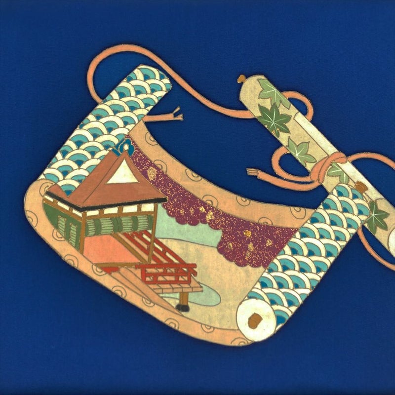 【色柄】青 カジュアル 金彩 絵巻物 塩瀬 染め