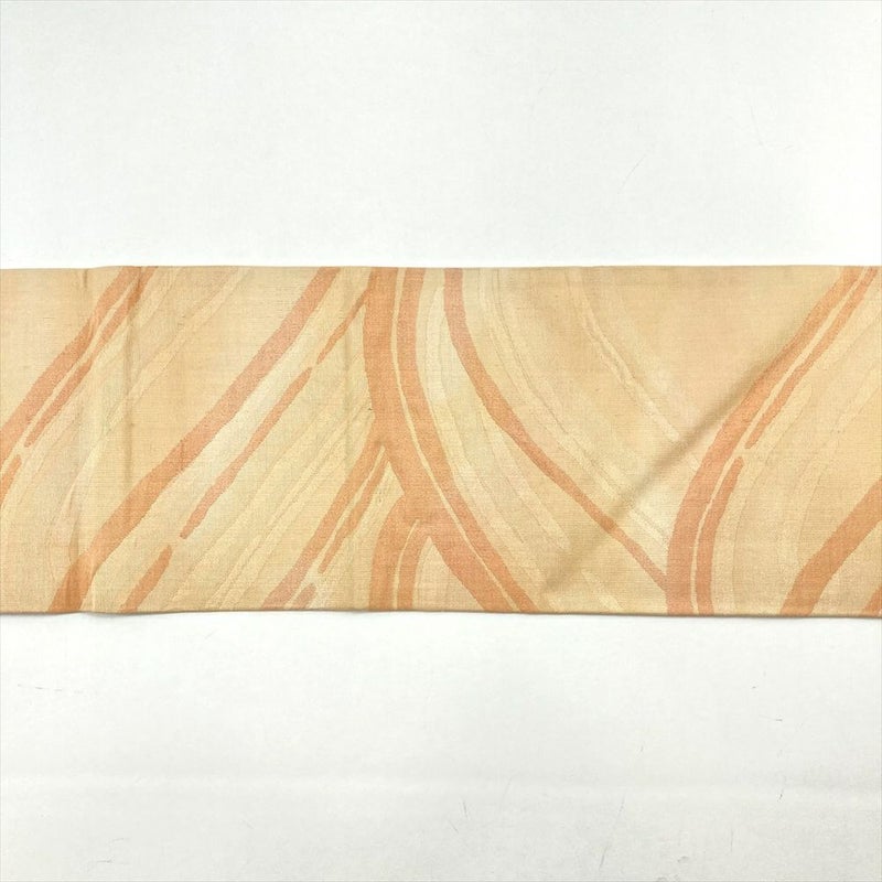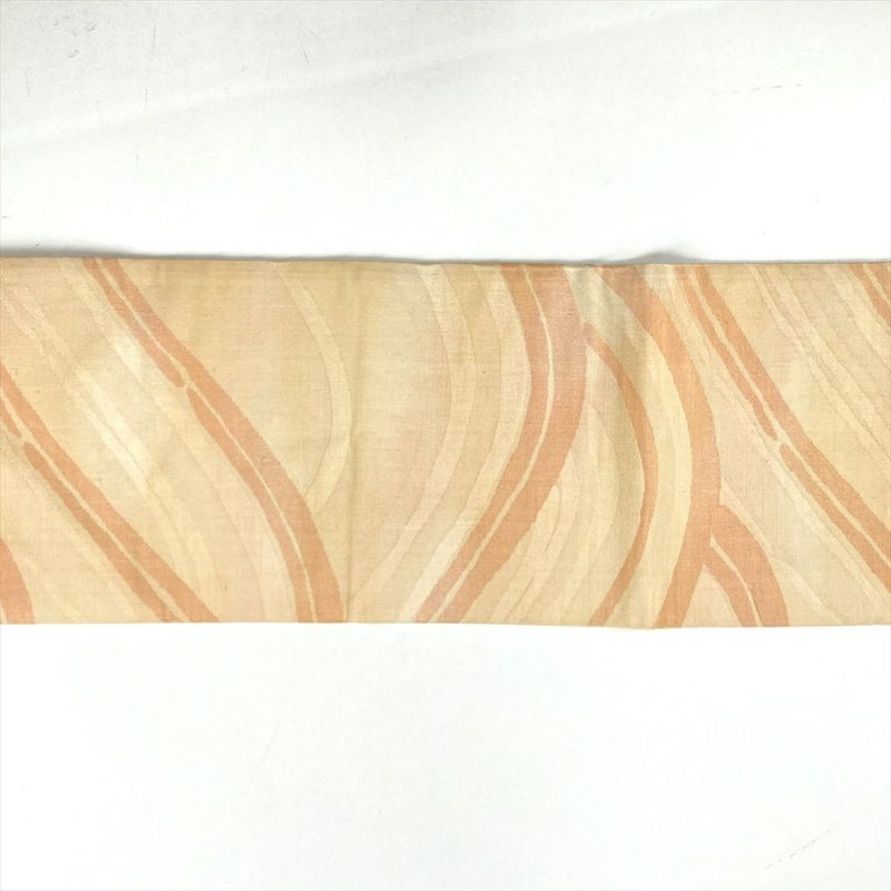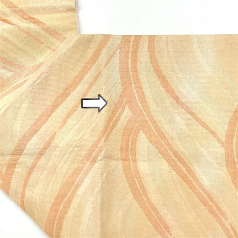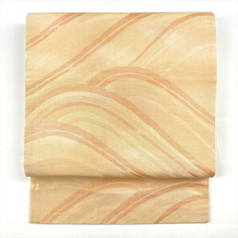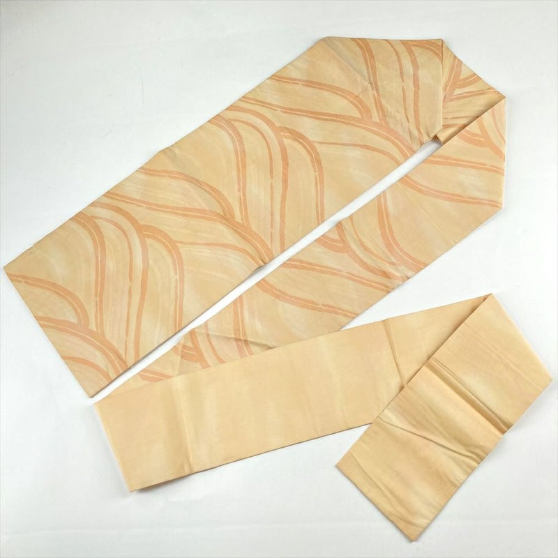 (中古)名古屋帯 薄黄色 カジュアル 名古屋仕立て 織り 波 グラデーション