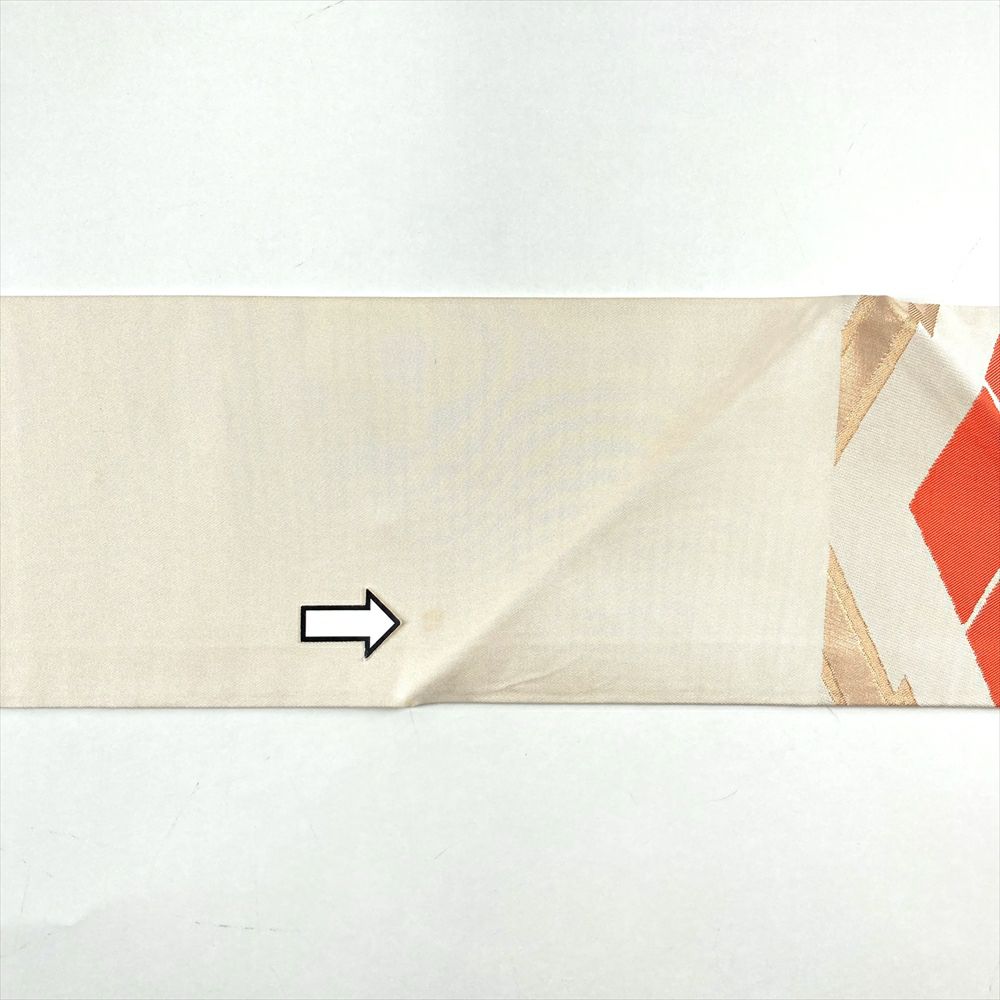 (中古)名古屋帯 生成り セミフォーマル カジュアル 名古屋仕立て 織り 切箔 松皮菱 武田菱