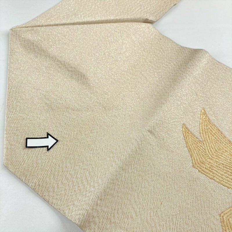(中古)名古屋帯 金 ベージュ セミフォーマル カジュアル 名古屋仕立て 織り 金糸 銀糸 あわじ玉