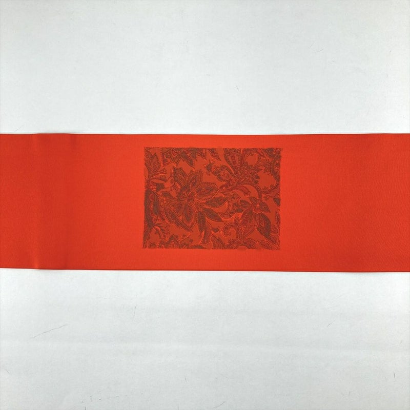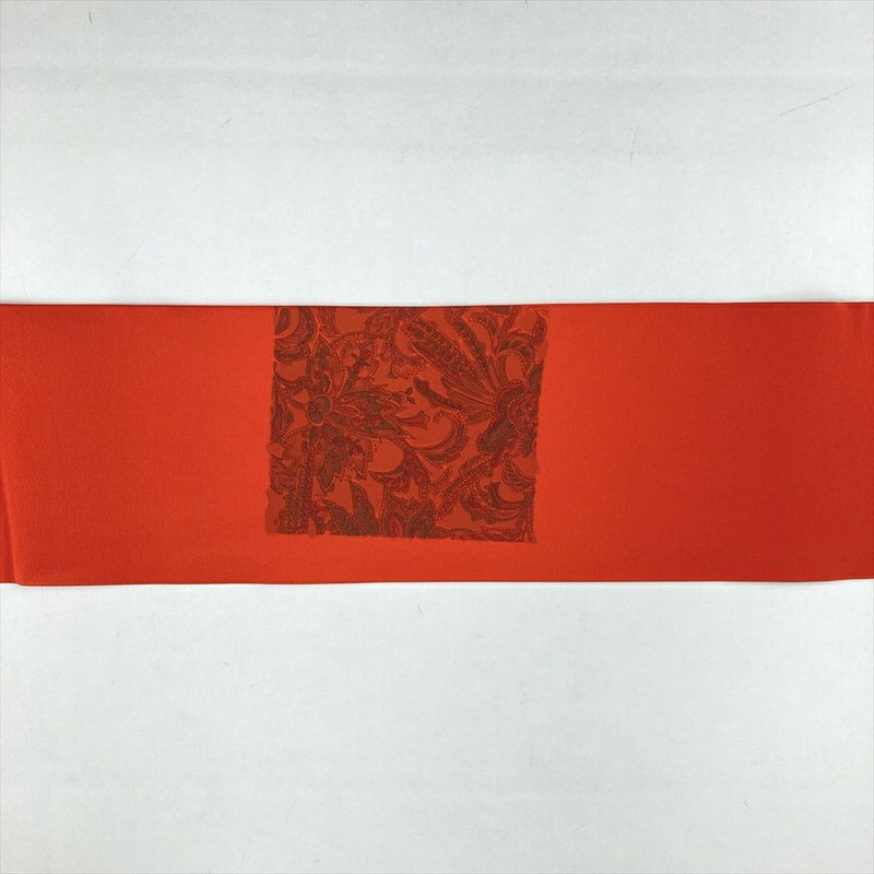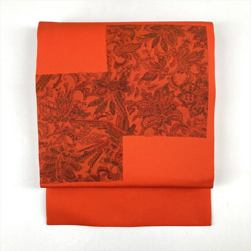 (中古)名古屋帯 オレンジ カジュアル 名古屋仕立て 塩瀬 染め 更紗 オリエンタル柄