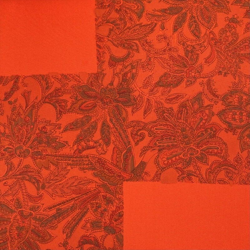 【色柄】オレンジ カジュアル 更紗 オリエンタル柄 塩瀬 染め