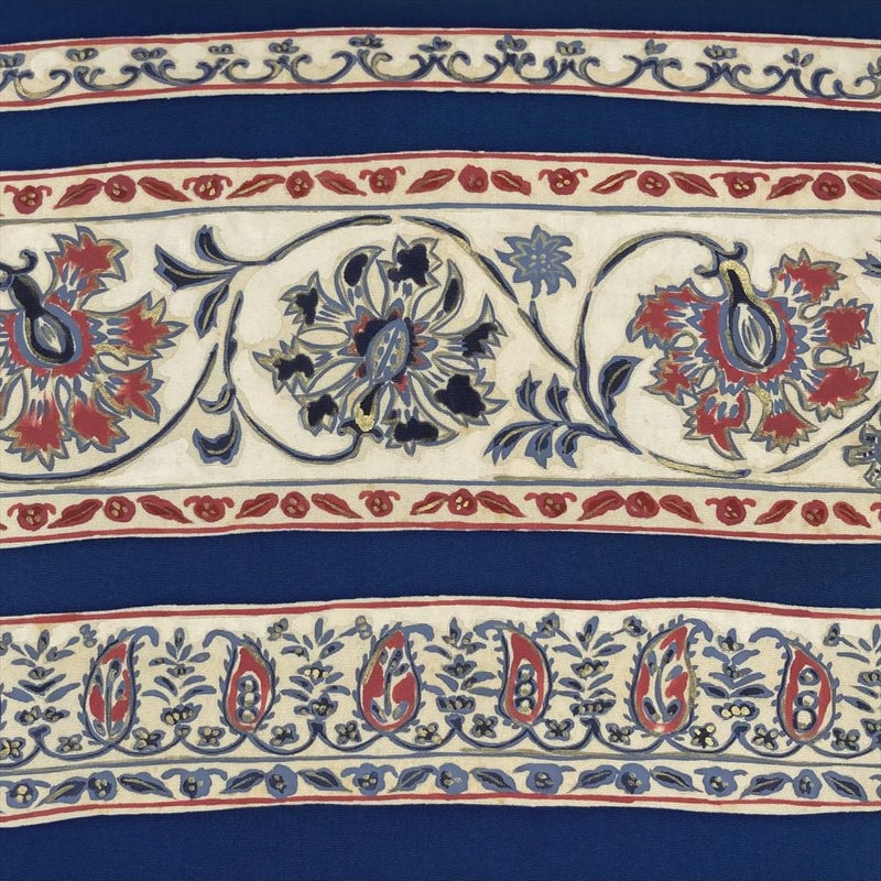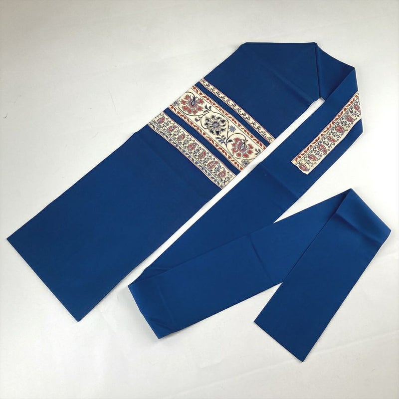 【色柄】濃青 カジュアル 更紗 植物 オリエンタル柄 塩瀬 染め