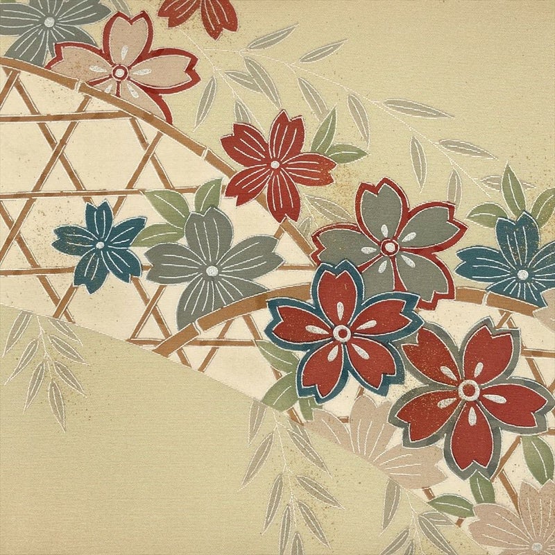 【色柄】ベージュ カジュアル 金彩 銀彩 花葉 蛇篭 塩瀬 染め