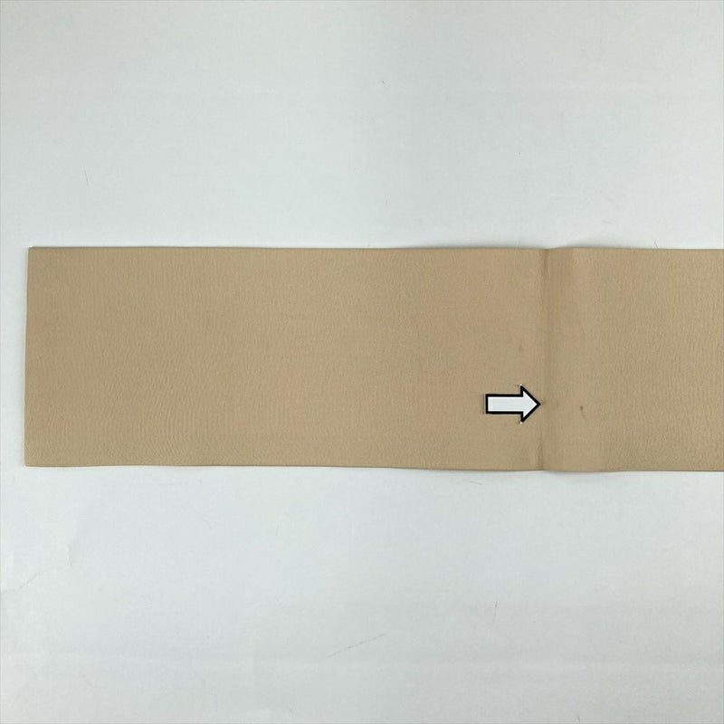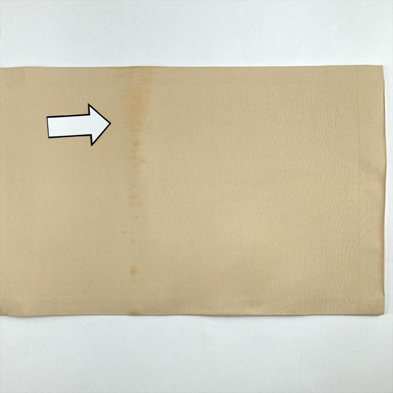 張りがあり締めるときっちりと締まる、気持ちの良い人気の帯地です。比較的カジュアルな場面で、普段使いにおすすめです。手先、前柄付近、たれの裏表にシミ汚れがございます。たれ先にたるみがございます。保存臭がややございます。