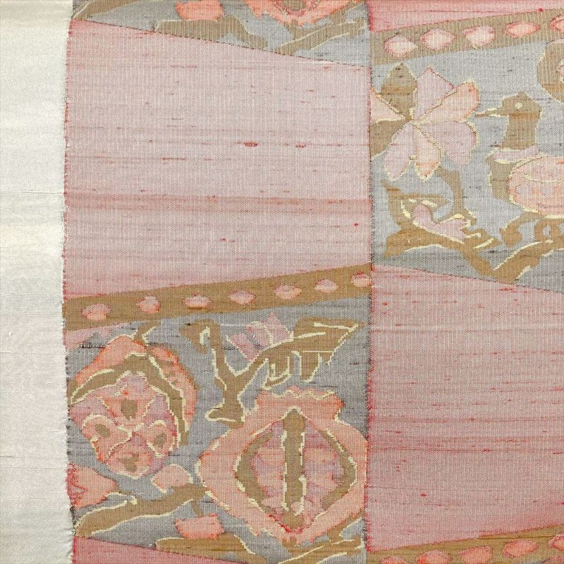 【色柄】 赤紫 生成り カジュアル 名古屋仕立て 織り 花鳥 幾何学柄