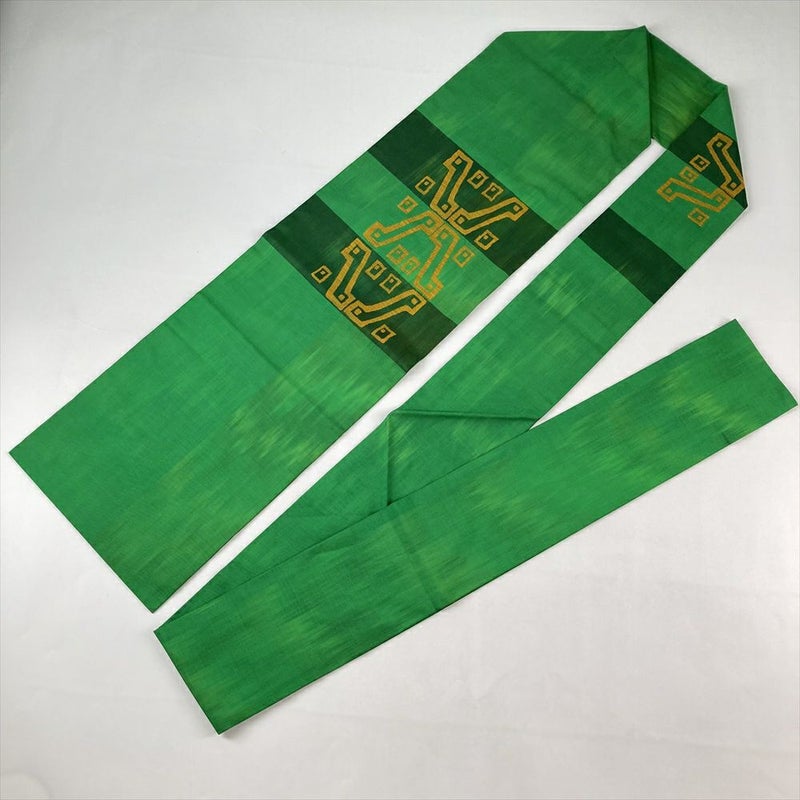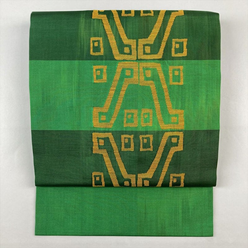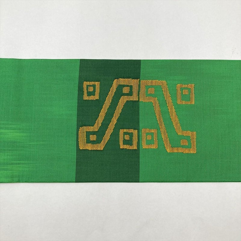 (中古)名古屋帯 緑色 カジュアル 名古屋仕立て 織り オリエンタル柄