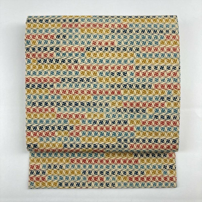 (中古)名古屋帯 ベージュ マルチカラー カジュアル 名古屋仕立て 染め 風車