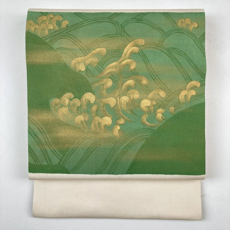 【色柄】白 カジュアル 塩瀬 金彩 波