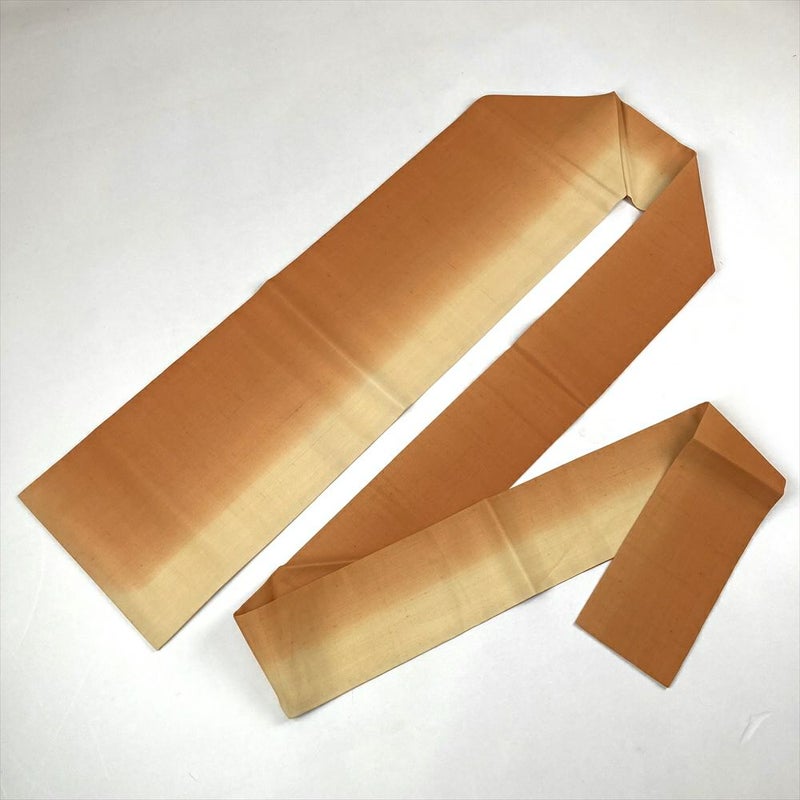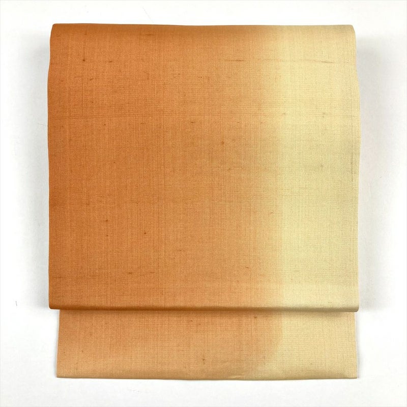 (中古)九寸名古屋帯 オレンジ カジュアル 紬 ぼかし染め 名古屋仕立て