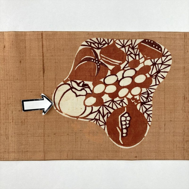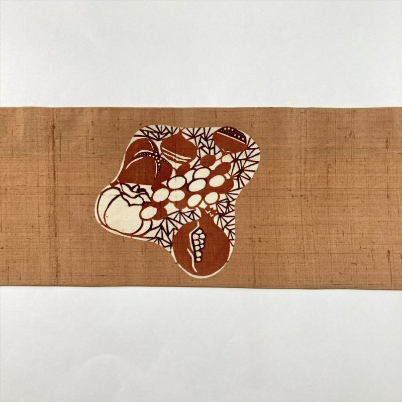 (中古)名古屋帯 薄茶 カジュアル 名古屋仕立て 紬地 染め 栗 柘榴 絹