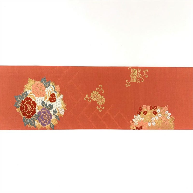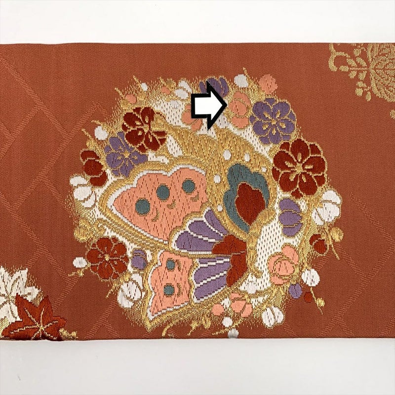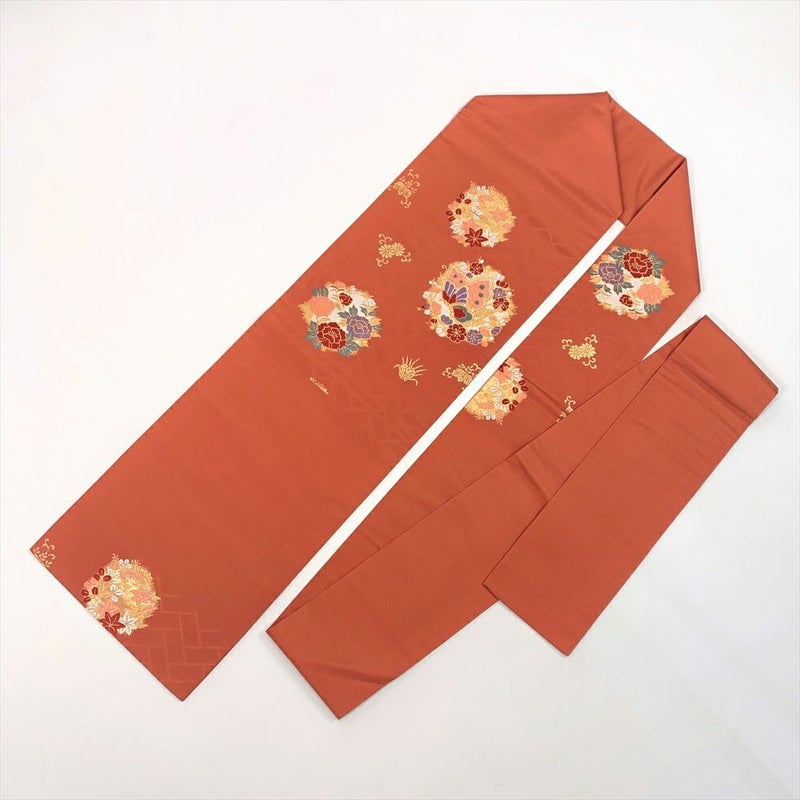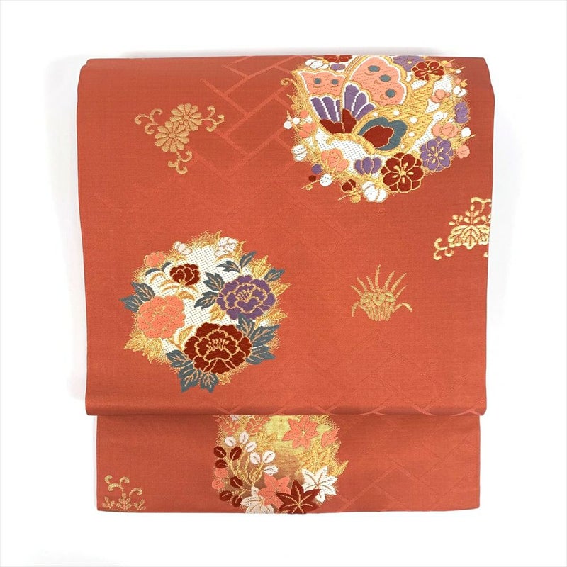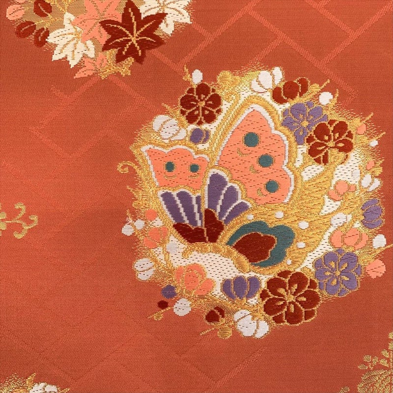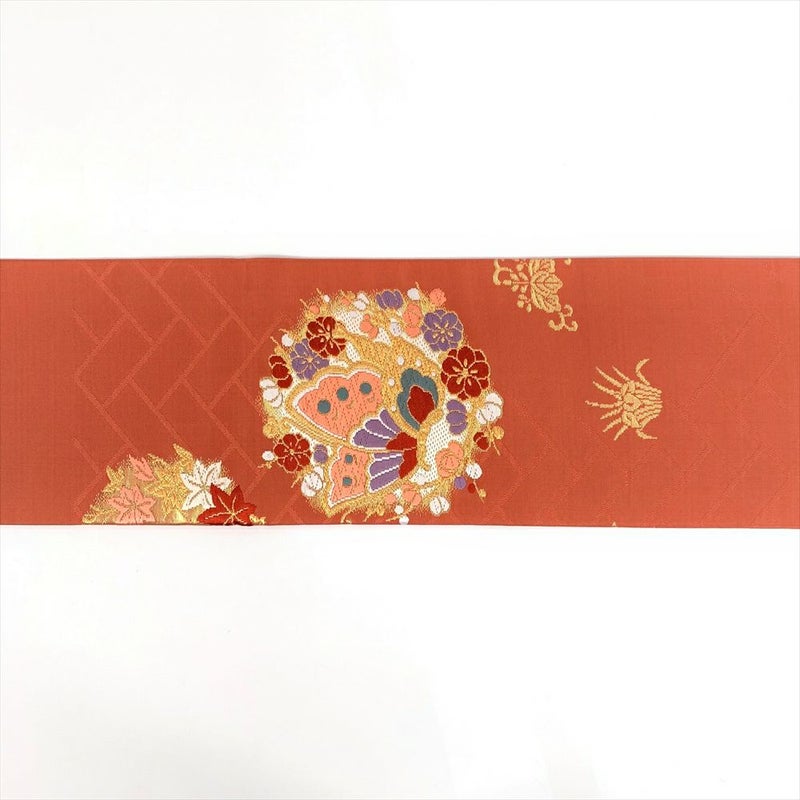 【色柄】オレンジ地 名古屋立て 金糸 花丸 蝶