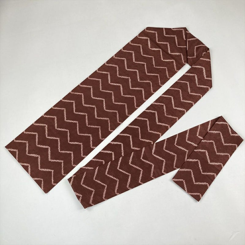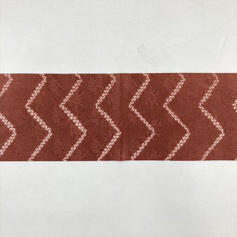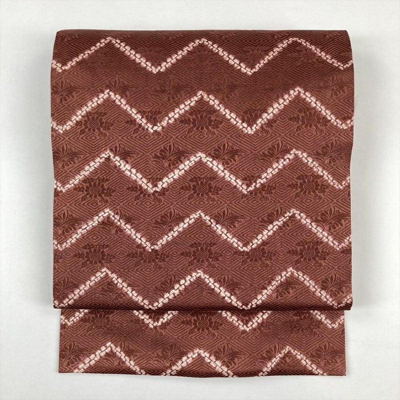 (中古)九寸名古屋帯 茶 カジュアル 絞り 地紋 名古屋仕立て