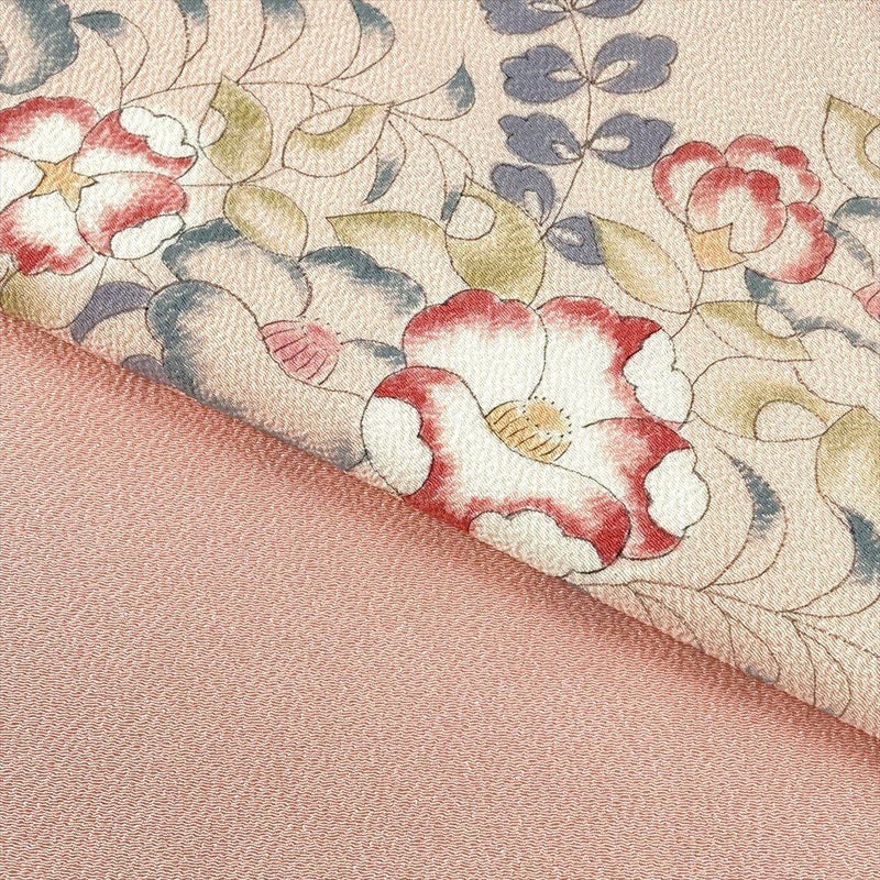 【色柄】ピンク カジュアル 椿 縮緬 染め