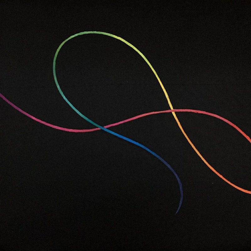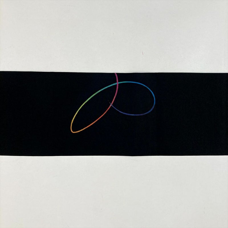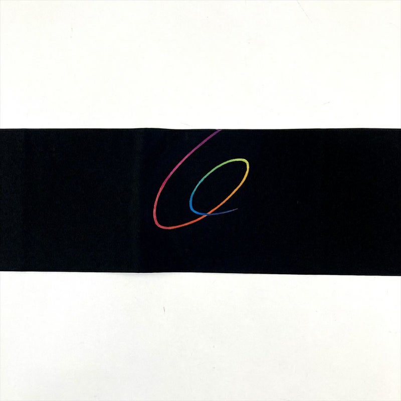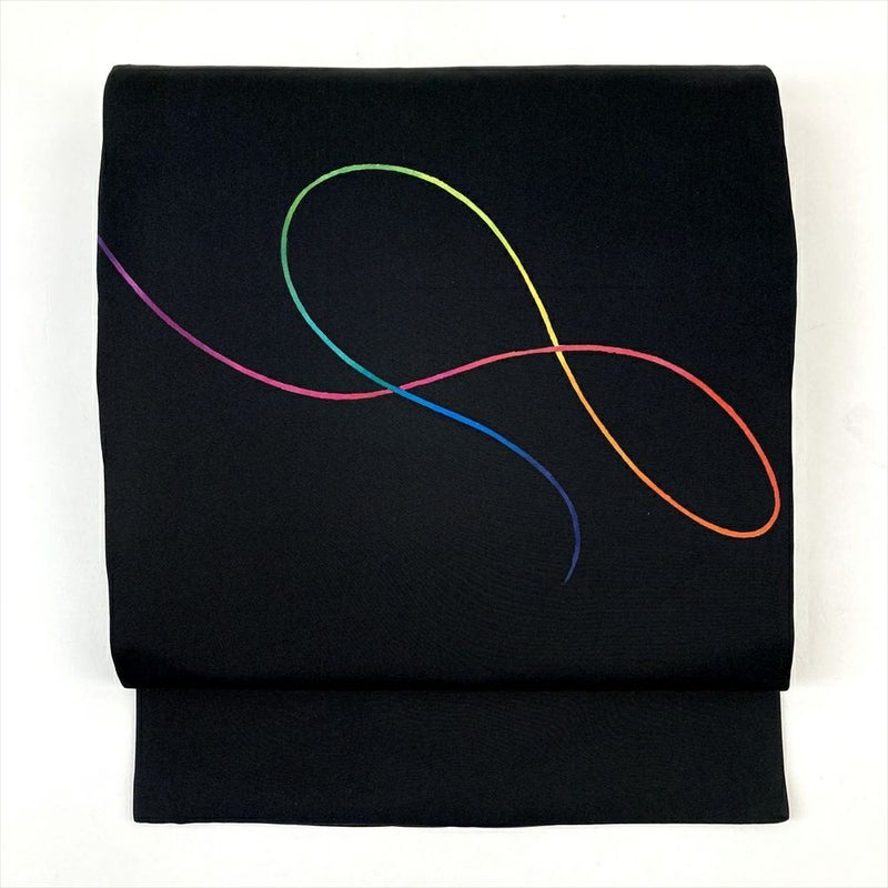 カジュアルな席にお締めただける帯になります。レインボーカラーで描かれたラインが差し色になりモダンな印象です。