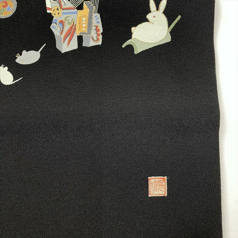【色柄】黒 カジュアル 縮緬 干支尽くし