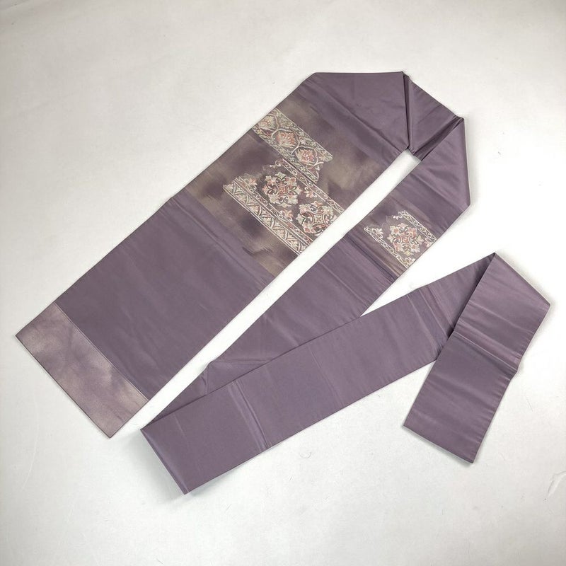 (中古)九寸名古屋帯 紫 カジュアル 金糸 銀糸 横段 華文 名古屋仕立て