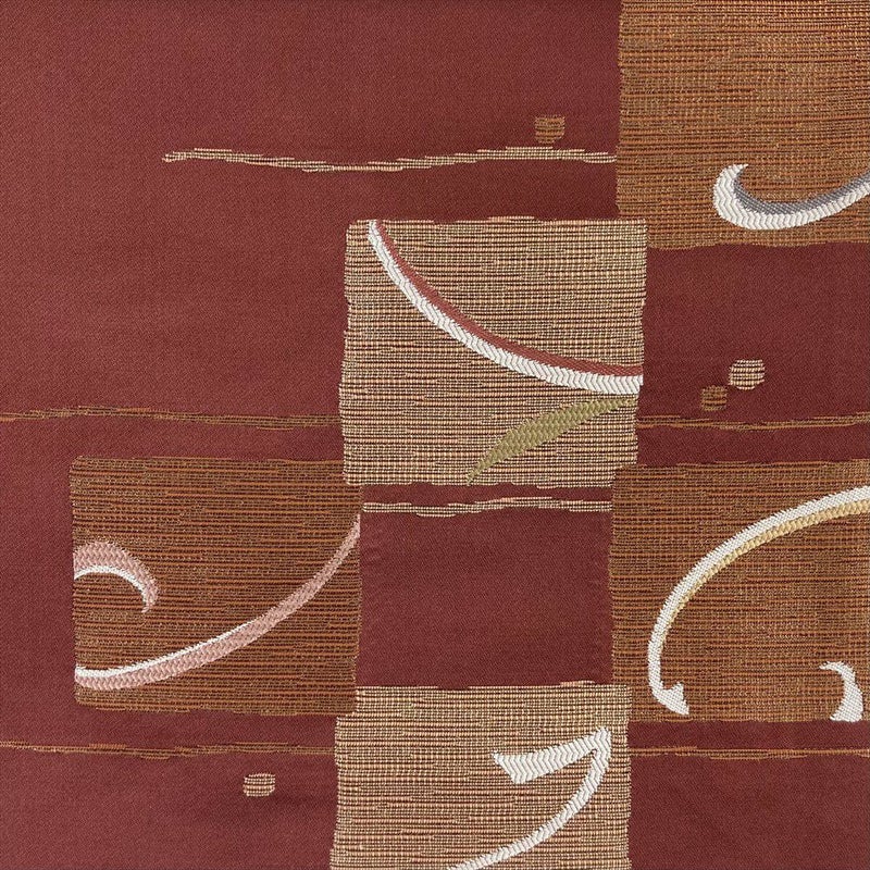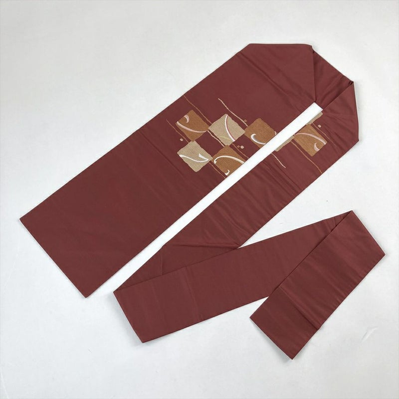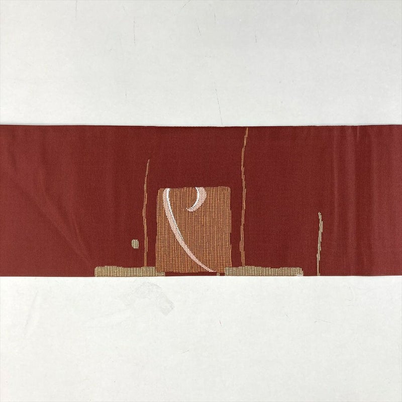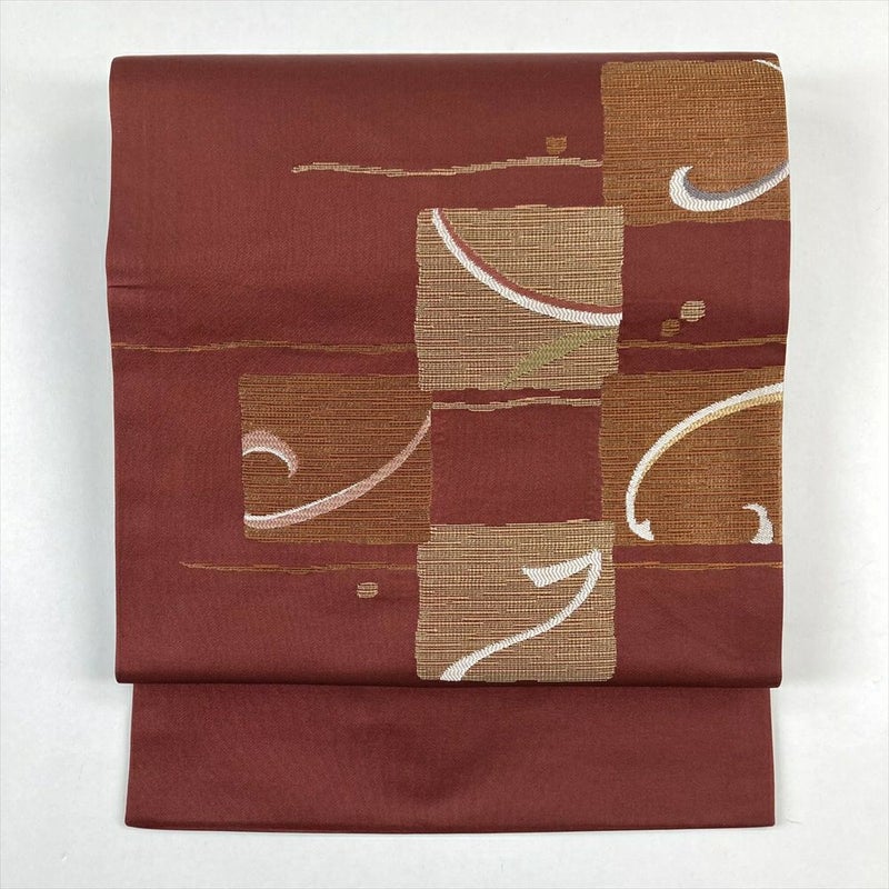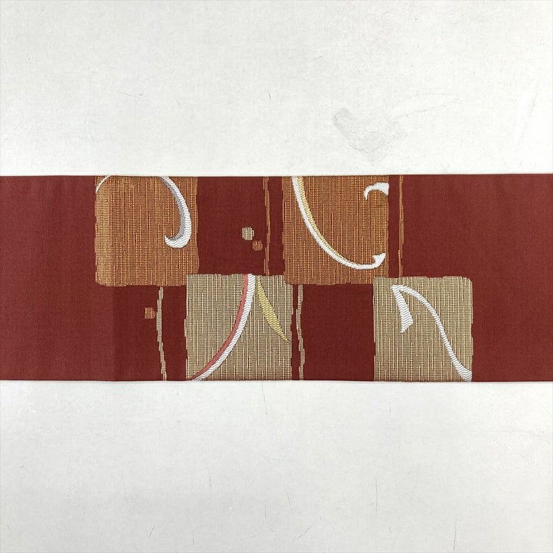 (中古)九寸名古屋帯 赤 カジュアル 色紙 植物 名古屋仕立て