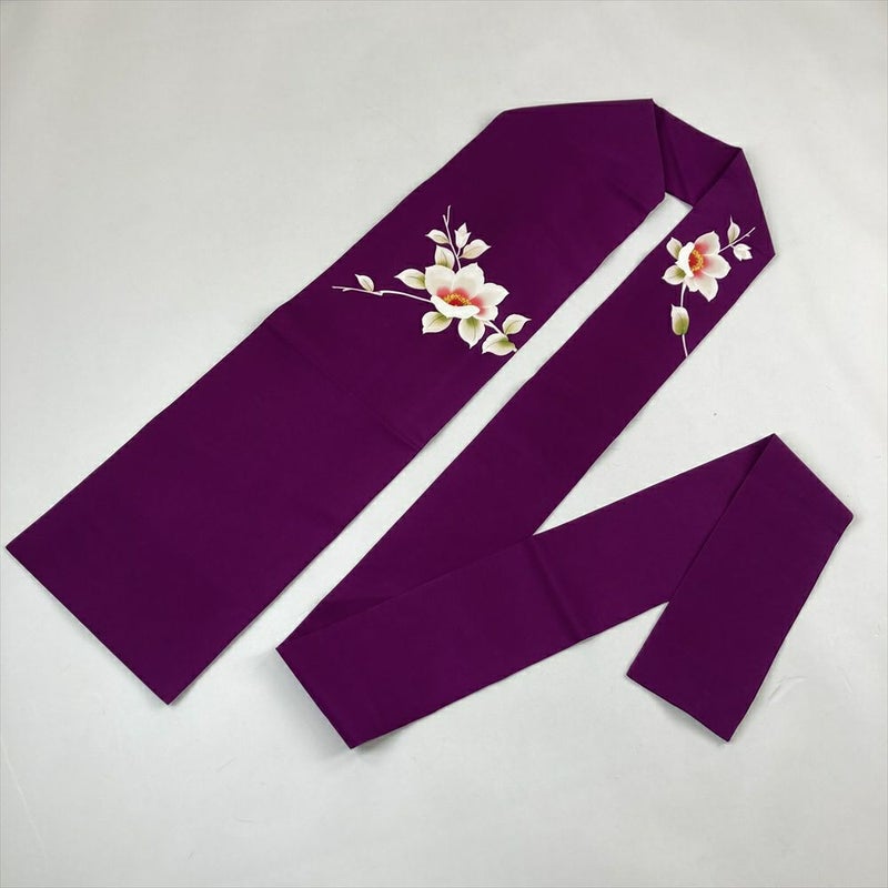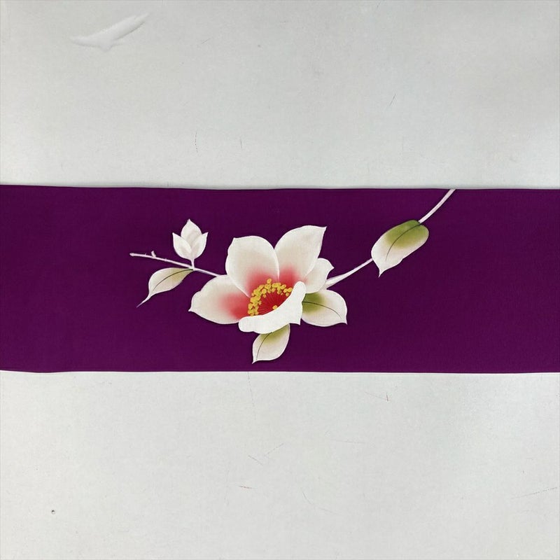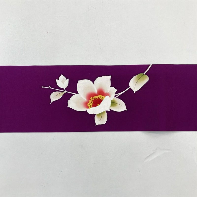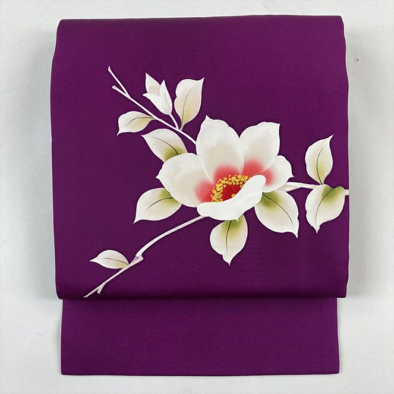 (中古)九寸名古屋帯 紫 カジュアル 塩瀬 椿 名古屋仕立て 未洗い