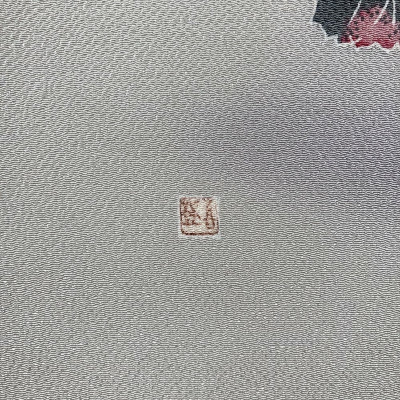 【色柄】グレー 白鼠色 カジュアル 花草 羽田登喜 ちりめん 染め