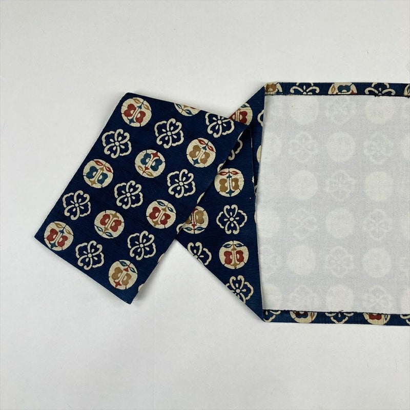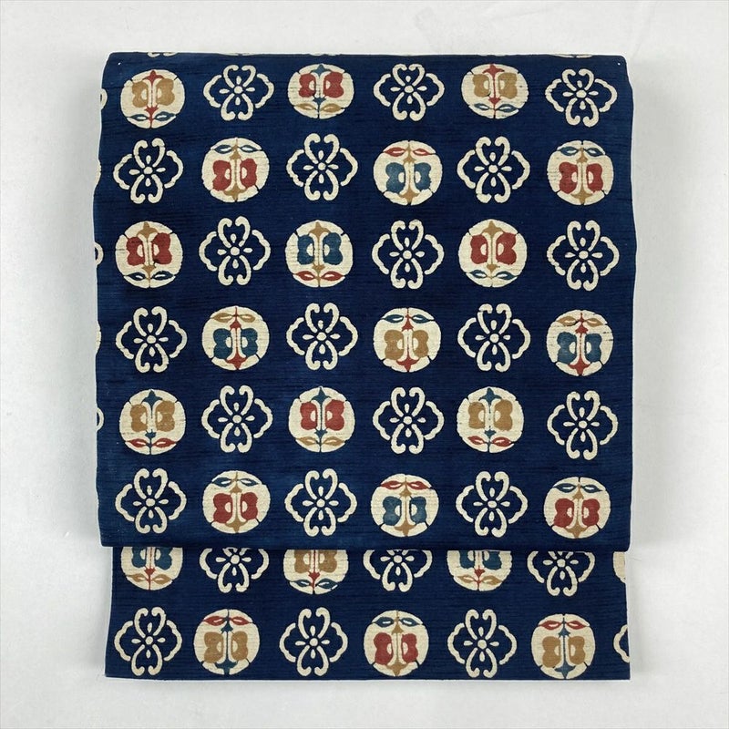 (中古)九寸名古屋帯 紺 カジュアル ろうけつ染め調 花 遠州椿