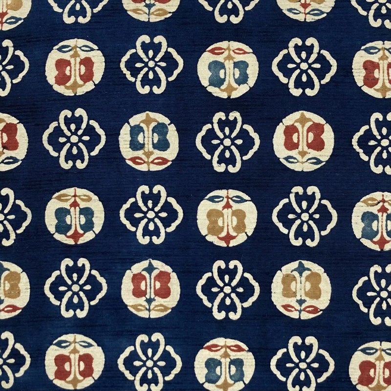 【色柄】紺 カジュアル ろうけつ染め調 花 遠州椿