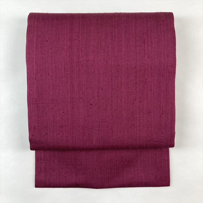 (中古)名古屋帯 赤紫 カジュアル 名古屋仕立て 織り 無地感 絹