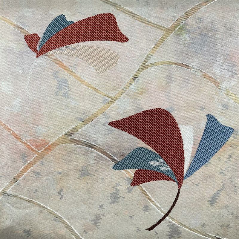【色柄】白金色 薄柿色 カジュアル 抽象柄 グラデーション 切箔 色糸