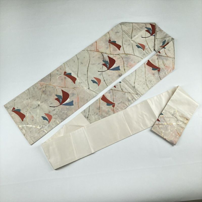 ランクB少し使用感ありとのことでしたが、かなりの美品でした。素材も張りがあり薄すぎず、とてもしめやすい帯です。地の色も薄いオレンジ色の入ったクリーム色で、どのようなお着物にも合わせやすく、季節も選ばないと思います。