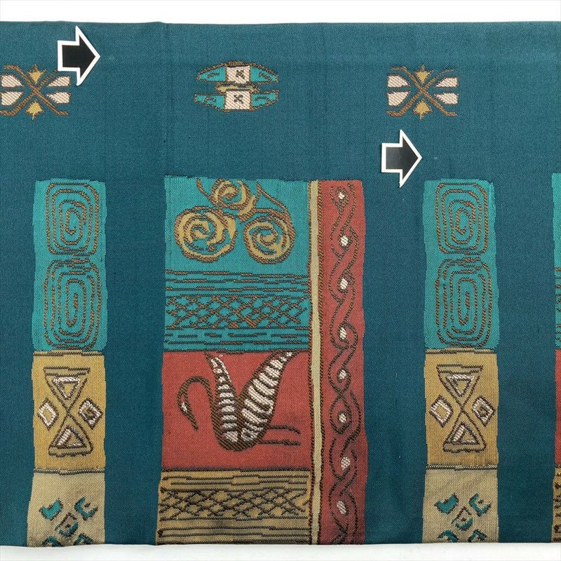 【色柄】濃青緑 カジュアル 鳥 幾何学柄 織り