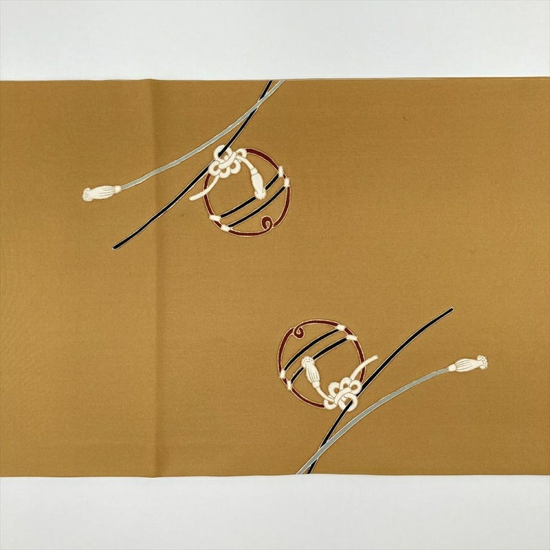 【色柄】金茶色 濃黄色 カジュアル 組紐に鈴 塩瀬 染め