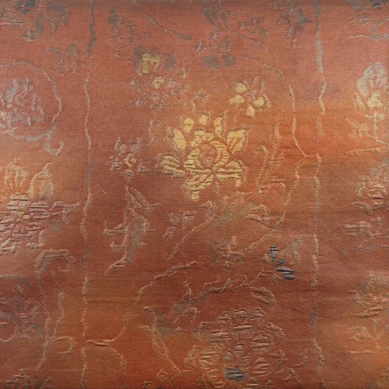 【色柄】赤茶色 カジュアル 花唐草 うるし箔調 ふくれ織り
