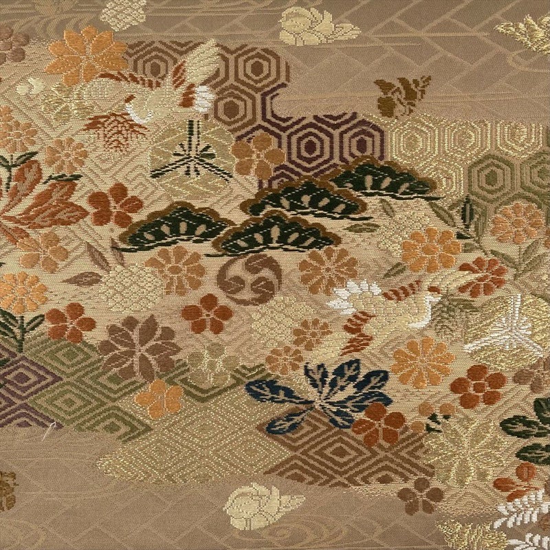 【色柄】薄茶色 カジュアル 花鳥 吉祥文 引き箔 金糸 色糸