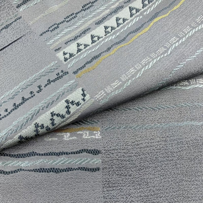 【色柄】ブルーグレー カジュアル 変わり横段文様 金糸 銀糸
