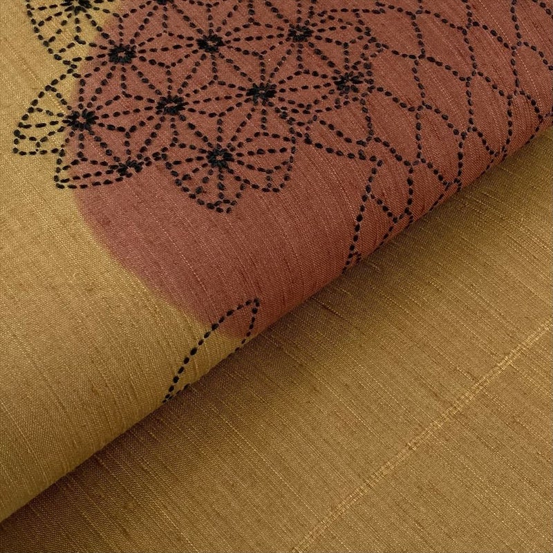 【色柄】芥子色 金茶 カジュアル 桜 麻の葉 紬 染め 刺し子