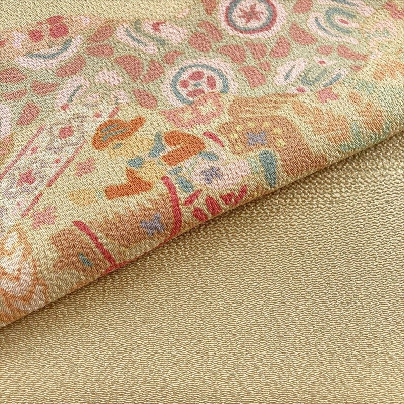 【色柄】ベージュ カジュアル オリエンタル 縮緬 染め