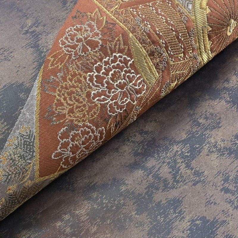 【色柄】灰紫 カジュアル 扇に御所車 引き箔