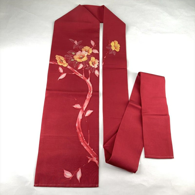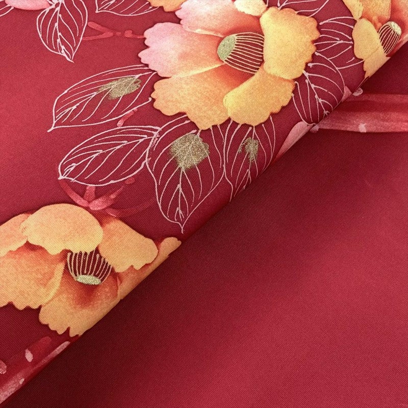 【色柄】赤 カジュアル 椿 塩瀬 ロウケツ 金彩