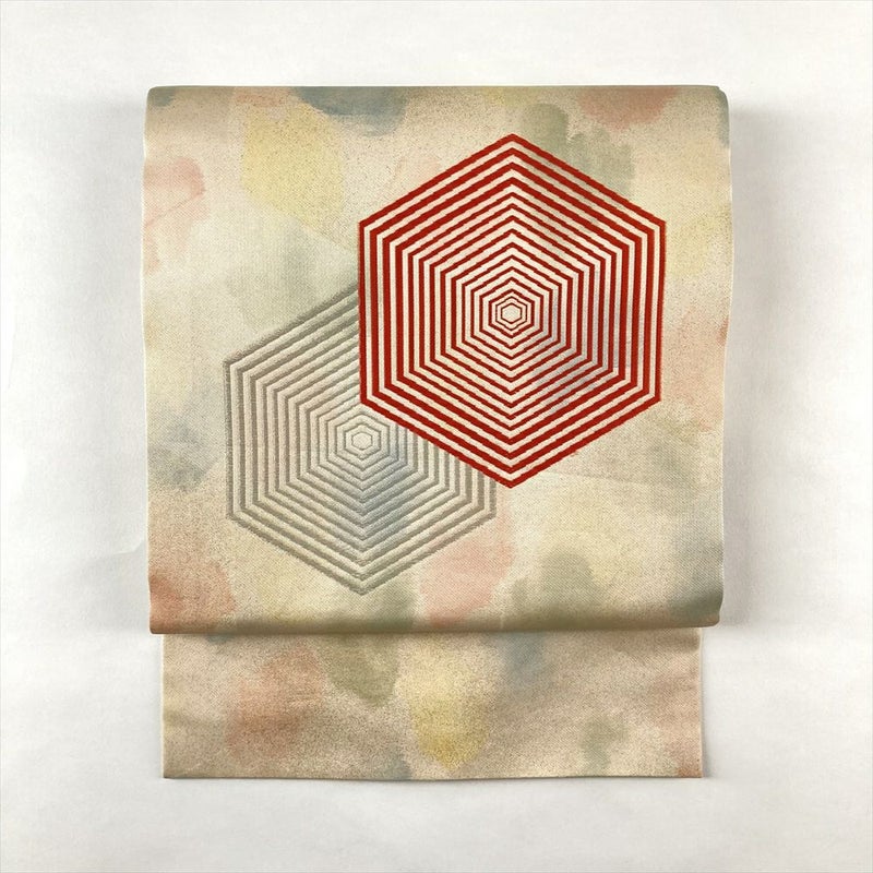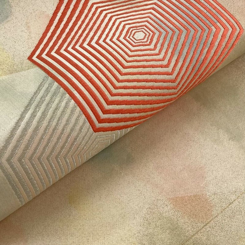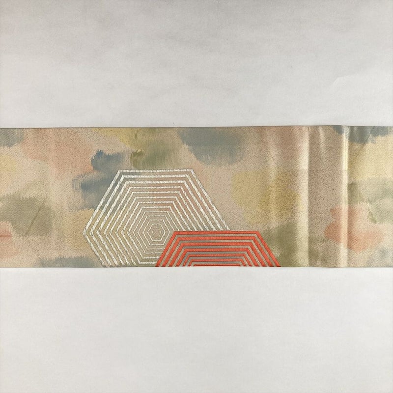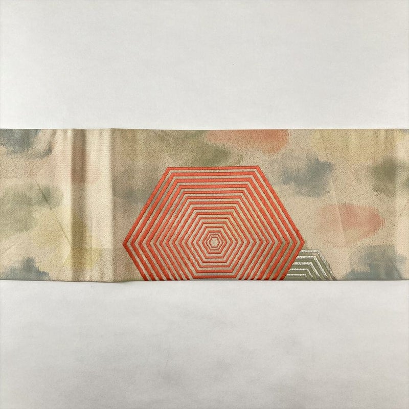 【色柄】ベージュ ペールオレンジ カジュアル 亀甲重ね 金糸 色糸