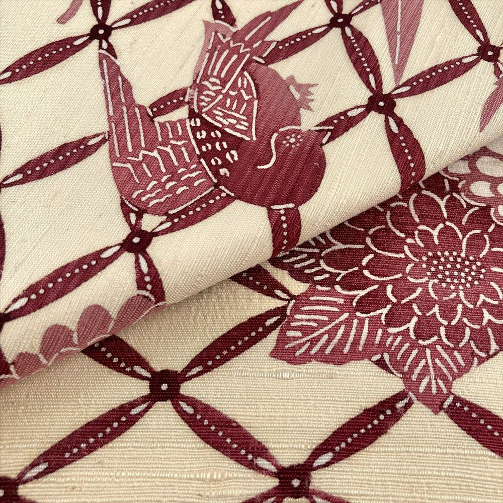 【色柄】生成り カジュアル 七宝に花鳥 紬地 染め