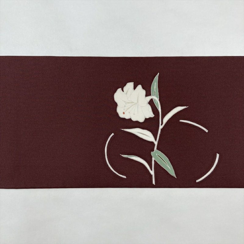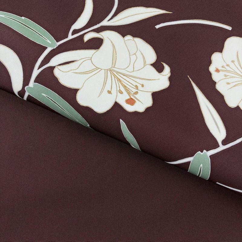 【色柄】焦げ茶 濃赤紫 カジュアル 百合の花 塩瀬 染め