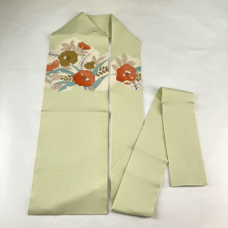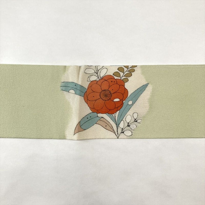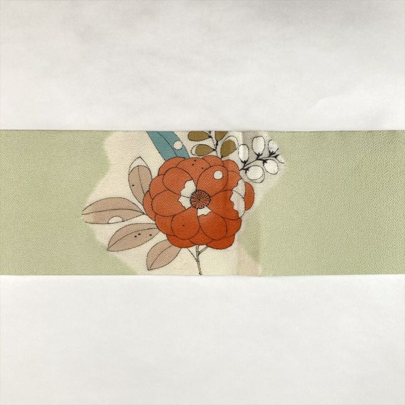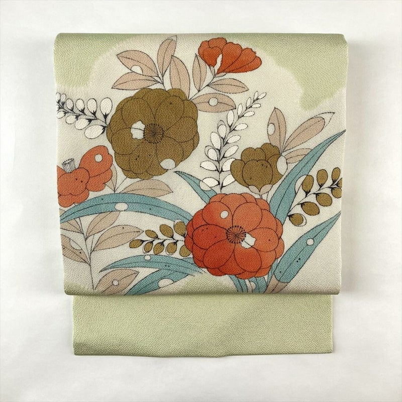 (中古)名古屋帯 薄緑 カジュアル 名古屋仕立て 染め 辻が花 絹