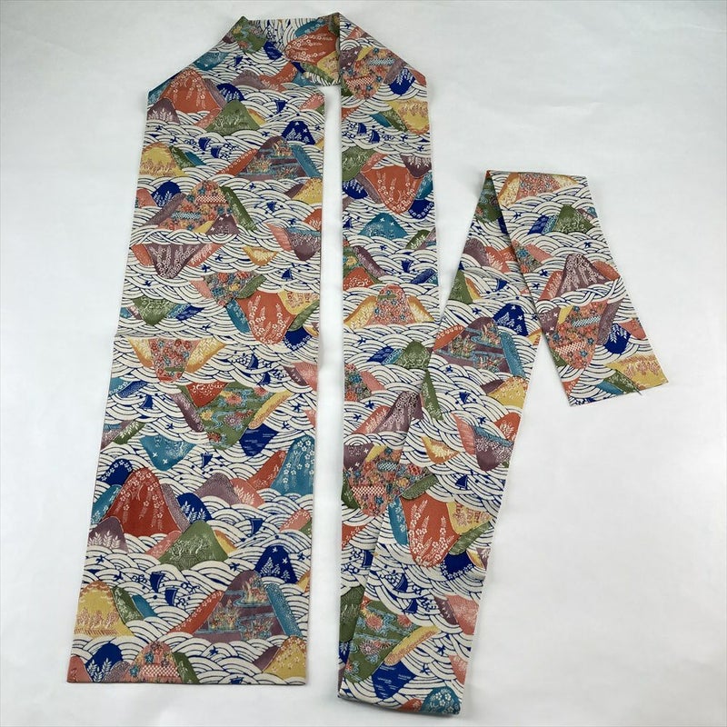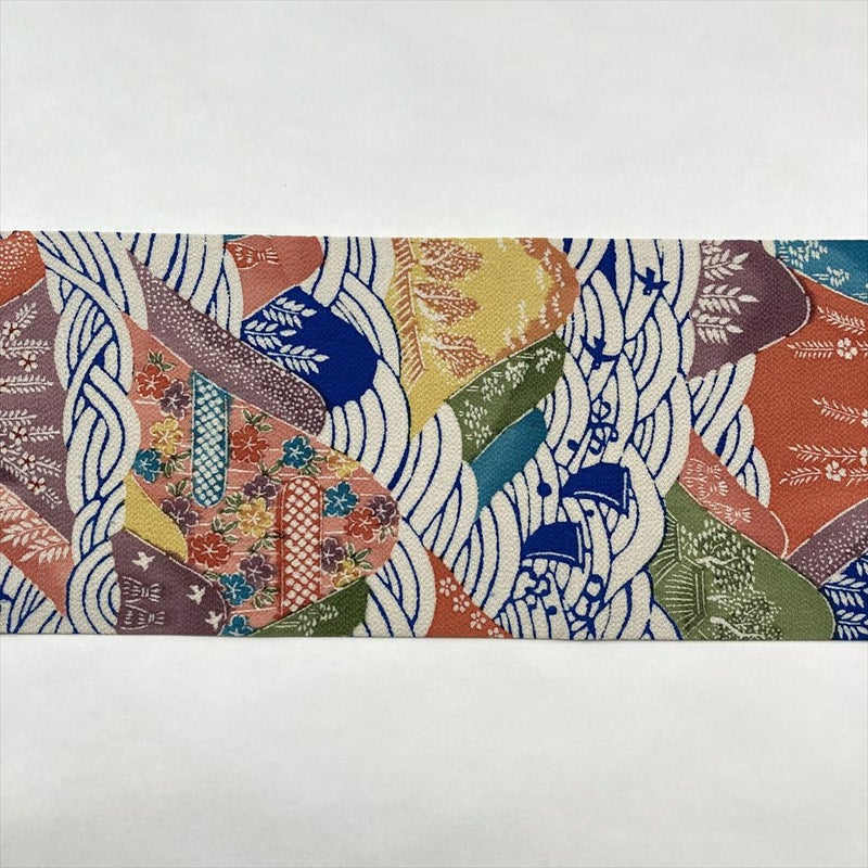 (中古)名古屋帯 多色 マルチカラー カジュアル 名古屋仕立て 染め 島波 絹