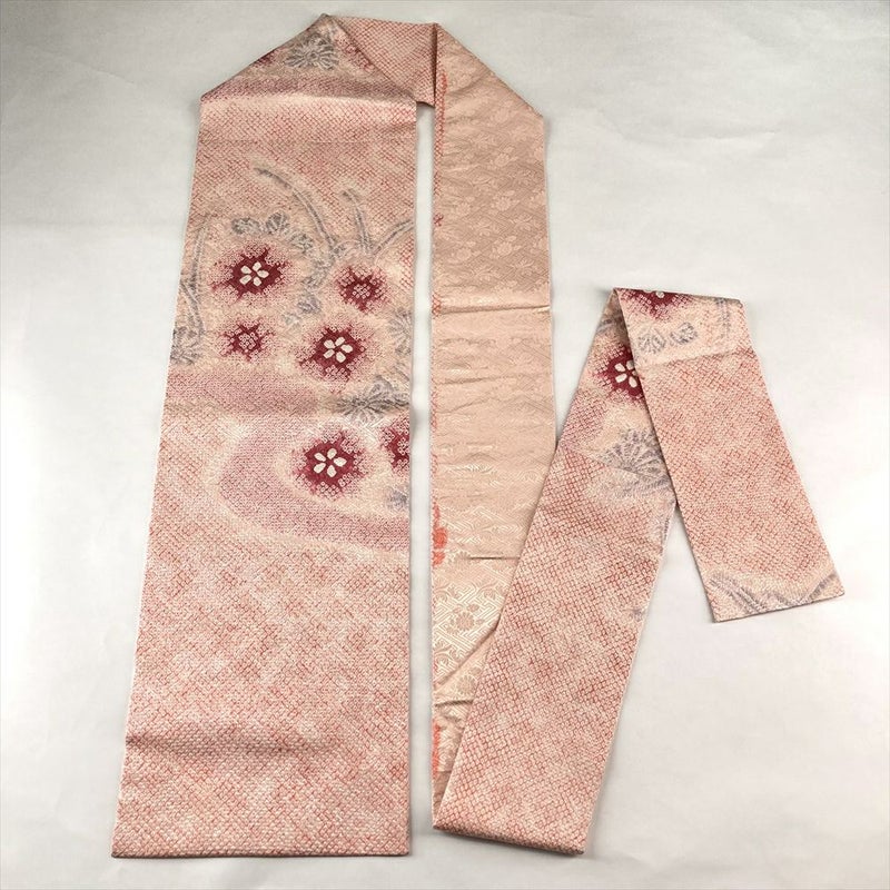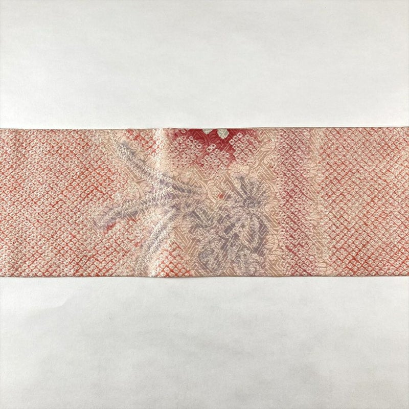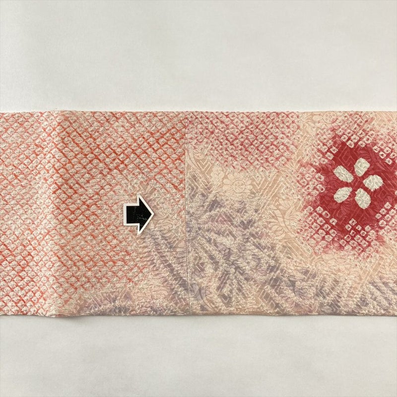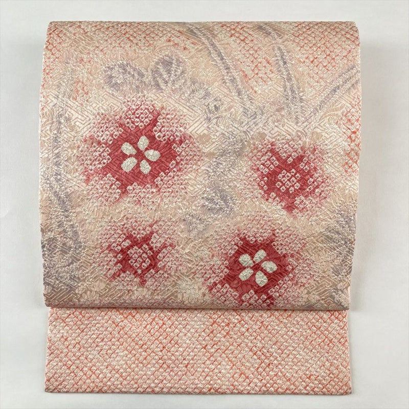 (中古)名古屋帯 ピンク カジュアル 名古屋仕立て 染め 絞り 花 絹