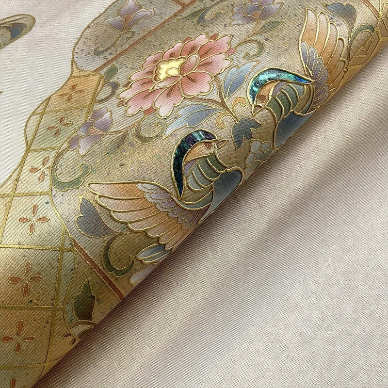 繊細な金彩で描かれた花鳥は、まるで極楽浄土から舞い降りたかのよう。