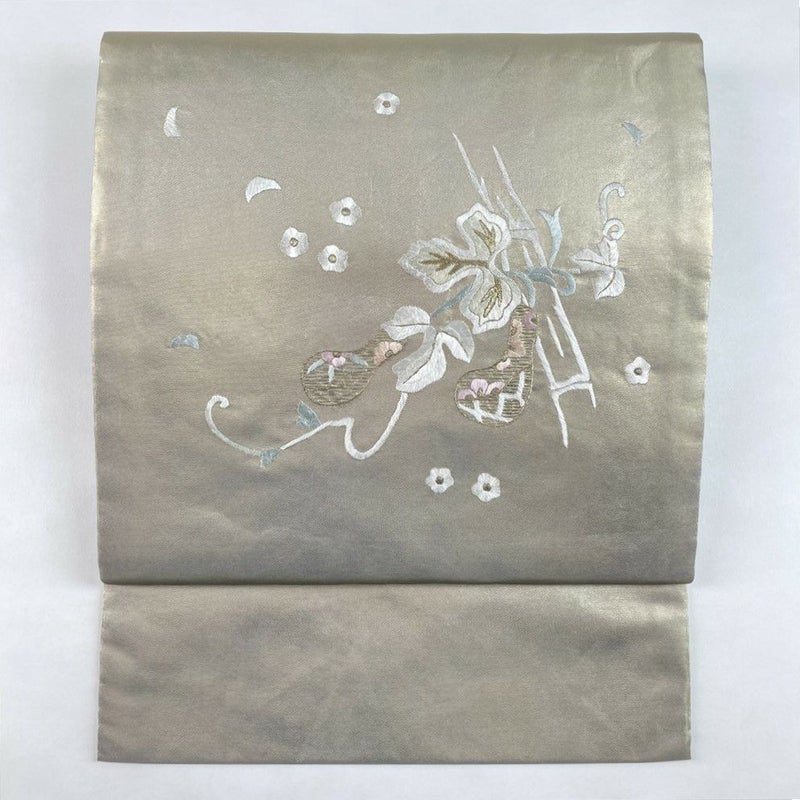 吉祥の象徴「瓢箪」の刺繍を施した、白金の上品な名古屋帯です。
