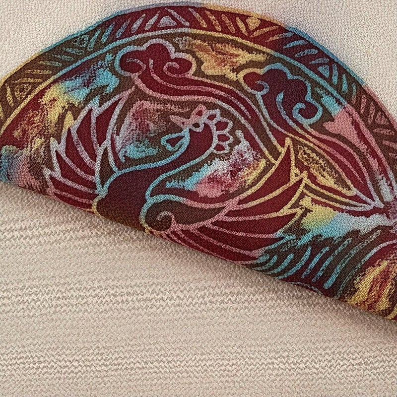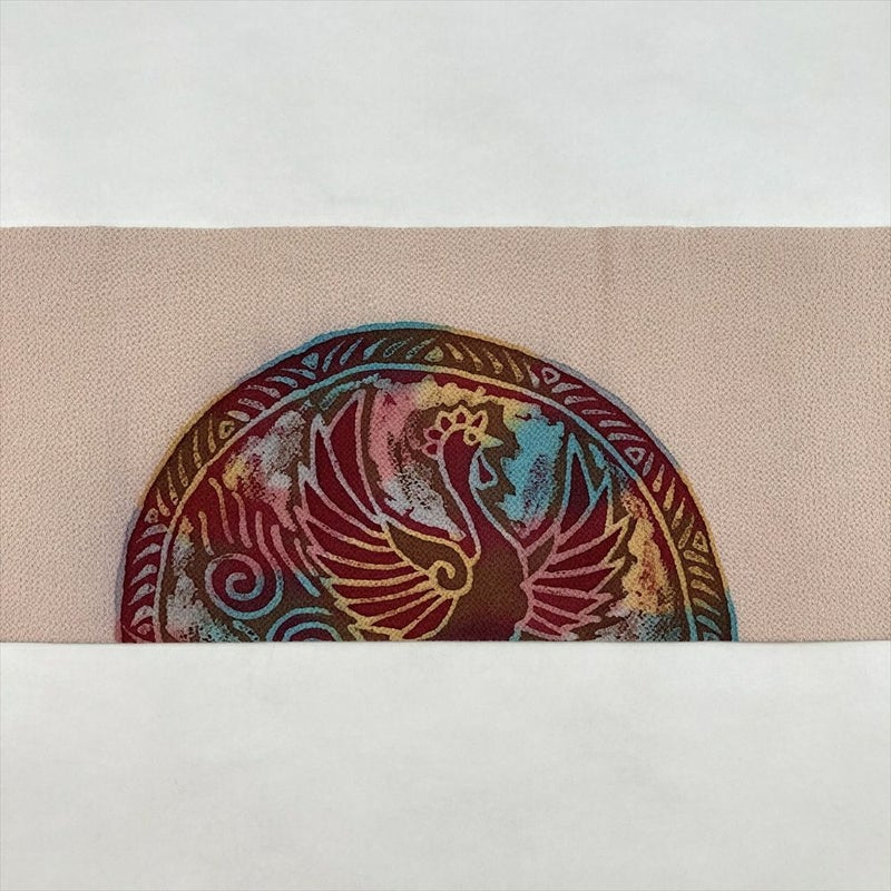 【色柄】灰桜 ピンク カジュアル 鳳凰文 縮緬 手描き