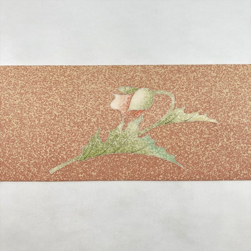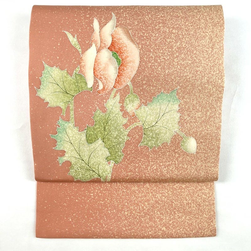 やわらかな珊瑚色に咲く花模様が、優しい華やかさを添える九寸名古屋帯。